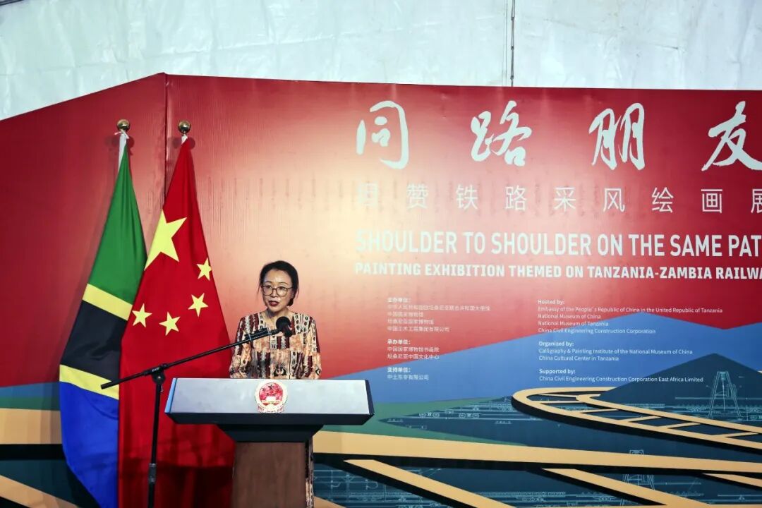 開幕式上,陳明健大使在致辭中回顧了坦贊鐵路的建設(shè)歷程,指出這條鐵路不僅是自由之路、發(fā)展之路,更是友誼之路,串聯(lián)起中坦贊三國人民的深厚情感。她強調(diào),隨著坦贊鐵路激活項目的簽署與開工,這條跨越半個世紀的鐵路將煥發(fā)新的生機,為兩國發(fā)展注入新的動力。基賈濟部長對主辦方表示感謝,認為畫展有力傳承了坦贊鐵路精神,并期待激活項目順利推進,使鐵路繼續(xù)成為連接三國人民心靈與發(fā)展的紐帶。隨后,兩位嘉賓共同為畫展揭幕,宣布展覽正式啟動。